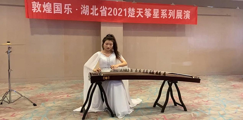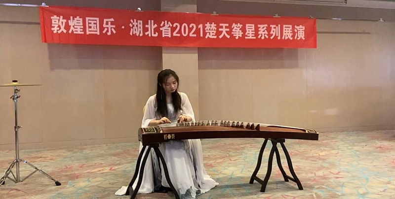 2021年7月24日至26日,由湖北省民族管弦乐学会、湖北省音乐家协会古筝学会指导,武汉荆彩文化传播有限公司主办,上海民族乐器一厂有限公司协办的敦煌国乐·湖北省2021楚天筝星系列展演活动在武汉市荷田大酒店会议中心精彩举行。我校音乐班9名古筝学生经过前期的层层筛选,脱颖而出,顺利进入决赛。