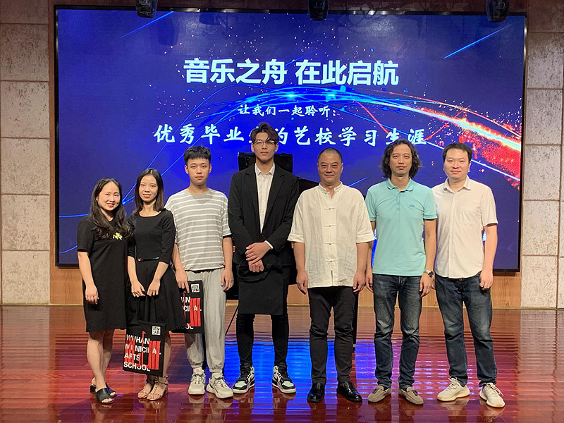 9月8日下午,我校邀请潘俊邑、罗婧宇、彭宣迪三名音乐专业优秀毕业生,现就读于武汉音乐学院,为音乐专业的学弟学妹们分享他们在艺校学习、生活的点点滴滴。