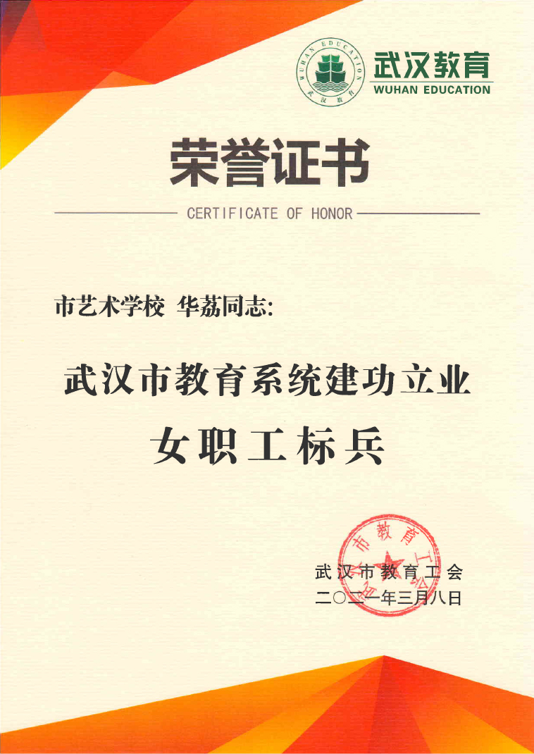 我校华荔同志被评为“武汉市教育系统建功立业女职工标兵”,特此喜报!