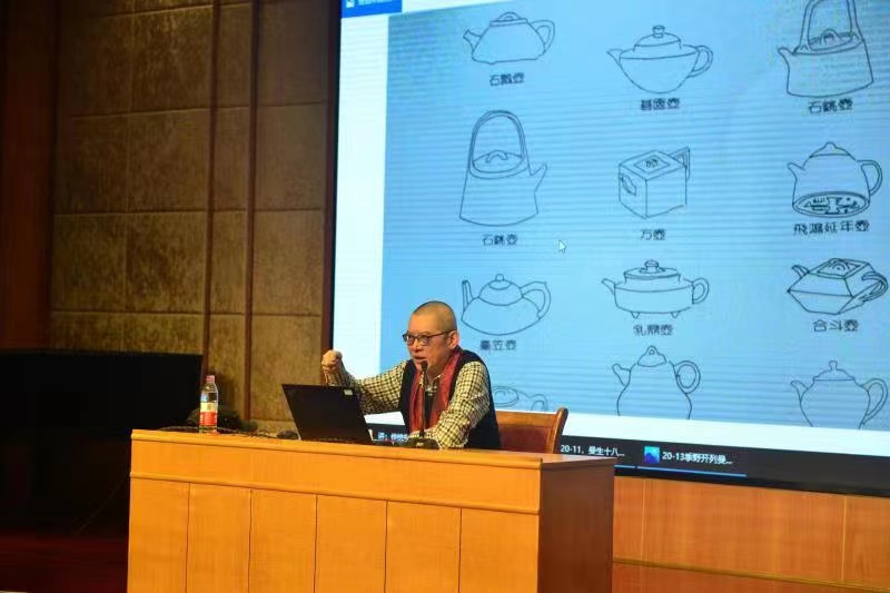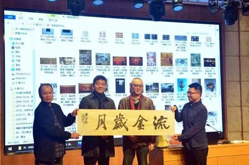 讲座对美国大都会博物馆收藏的中国乾隆时期的18罗汉菩提叶绘画作品、中国传统的88式曼生紫砂壶样式与艺术之间的关系等进行了深入浅出的讲解,同时沈教授将自己对于生活、艺术的热爱和感受穿插其间,使同学们感受到了中国传统文化艺术的博大精深,享受了一次精彩的艺术盛宴,进一步提升了我校师生的艺术修养和艺术鉴赏水平。讲座的最后,应聂磊校长邀请,沈教授挥毫题词“流金岁月”,以表示对我校建校七十周年的祝贺。