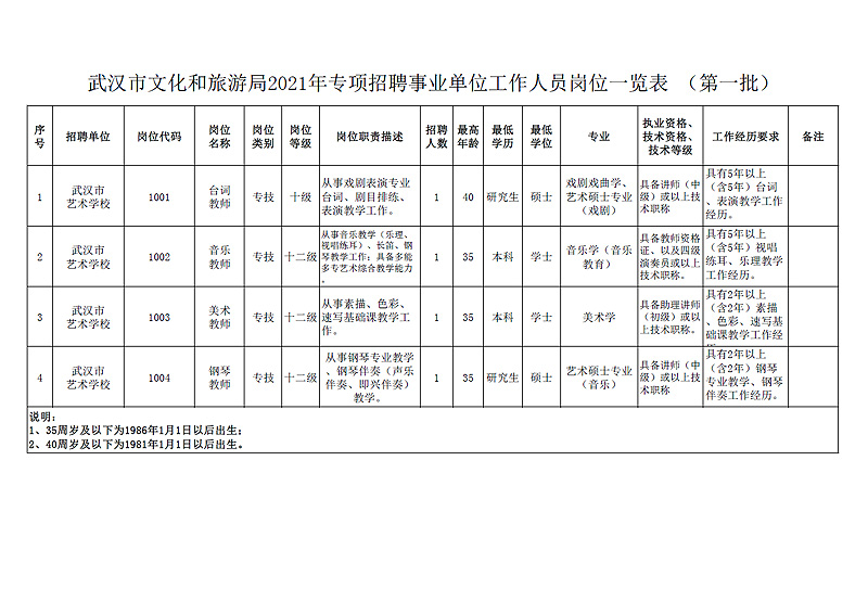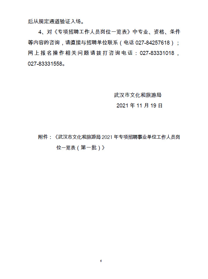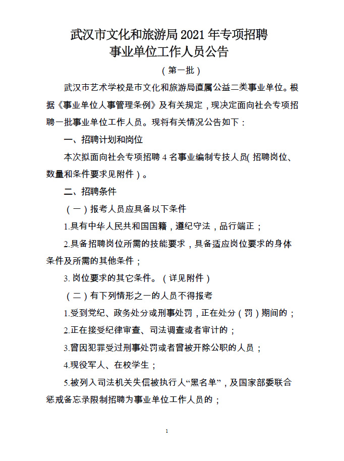 武汉市文化和旅游局2021年专项招聘事业单位工作人员公告