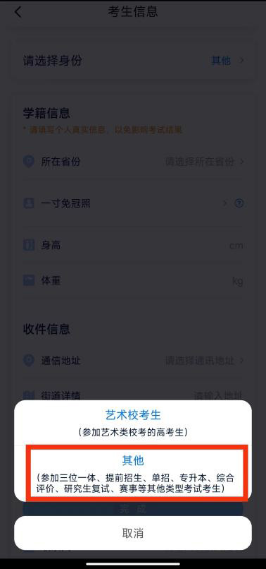 1.提前准备一张免冠证件照电子版。2.选择身份“其他”,按照指引填写学籍信息,即可完成认证,请务必根据实际情况填写准确。