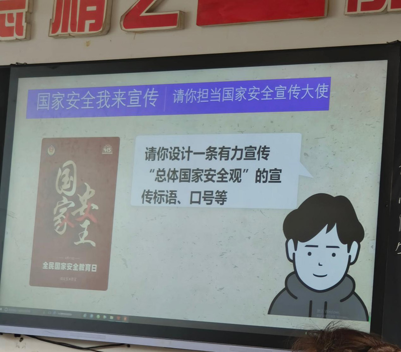 公开课上,思政课教师金叶运用多种教学手段,结合学生实际,引导学生理解国家安全的含义及其重要性,认识到国家安全是国家生存与发展的重要保障,是人民幸福安康的前提。国泰才能民安,维护国家安全的根本目的是维护人民安全,让人民安居乐业,幸福生活。