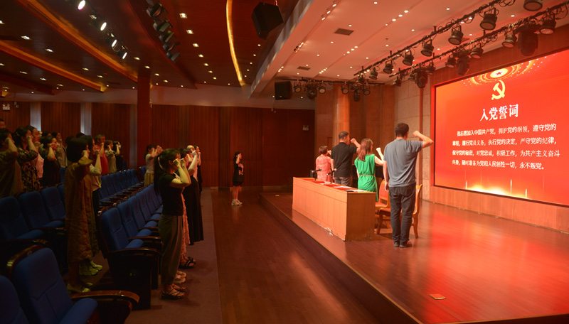 大会在雄壮的国歌声中拉开序幕,与会人员全体起立,高唱国歌。全体党员面对鲜红党旗重温入党誓词,深切表达在党的领导下踔厉奋发、砥砺前行,推动艺术教育事业高质量发展的坚定决心和信心。