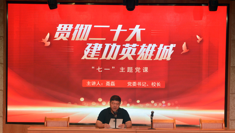 为庆祝中国共产党成立102周年,深入学习贯彻习近平新时代中国特色社会主义思想主题教育,7月4日中午,校党委组织全体党员在音乐厅隆重举行庆祝建党102周年大会。会议由校党委书记、校长聂磊主持。