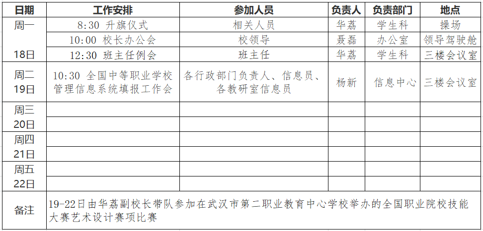 第3周工作安排表(2023年9月18日—9月22日)