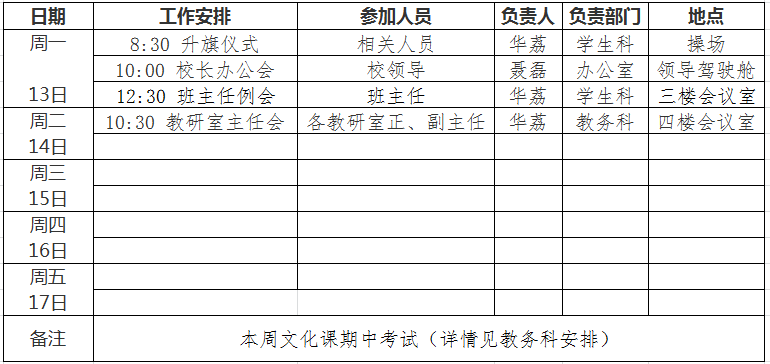 第11周工作安排表(2023年11月13日—11月17日)