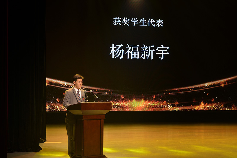 2019级音乐剧班杨福新宇同学作为获奖学生代表发言,他向武汉设计工程学院致以诚挚的感谢,感谢开云网页版为大家提供的良好学习氛围,号召同学们不负荣誉,戒骄戒躁,继续前行。