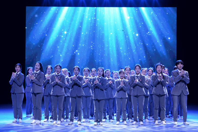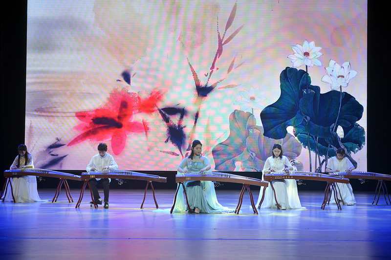 丰富多彩的师生技能展演把颁奖仪式推向高潮。青年教师汪伊林和音乐班同学们带来的古筝重奏《战台风》,展现了码头工人大无畏的精神和压倒一切困难的英雄气概;花季少年合唱团带来的《夜空中最亮的星》,激发了同学们积极阳光,拼搏向上的正能量;服装班学生带来服装表演《锦绣》,展现了锦绣中华情,东方神韵美,让大家领略了中华传统文化的魅力;舞蹈专业师生带来的原创舞蹈《极境之地》展现了雪域高原独有的人文风貌及自然之美,给师生们带来了精神上的震撼与激励。