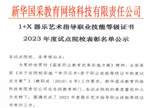 喜报!我校获评2023年度1+X器乐艺术 指导职业技能等级证书优秀合作单位