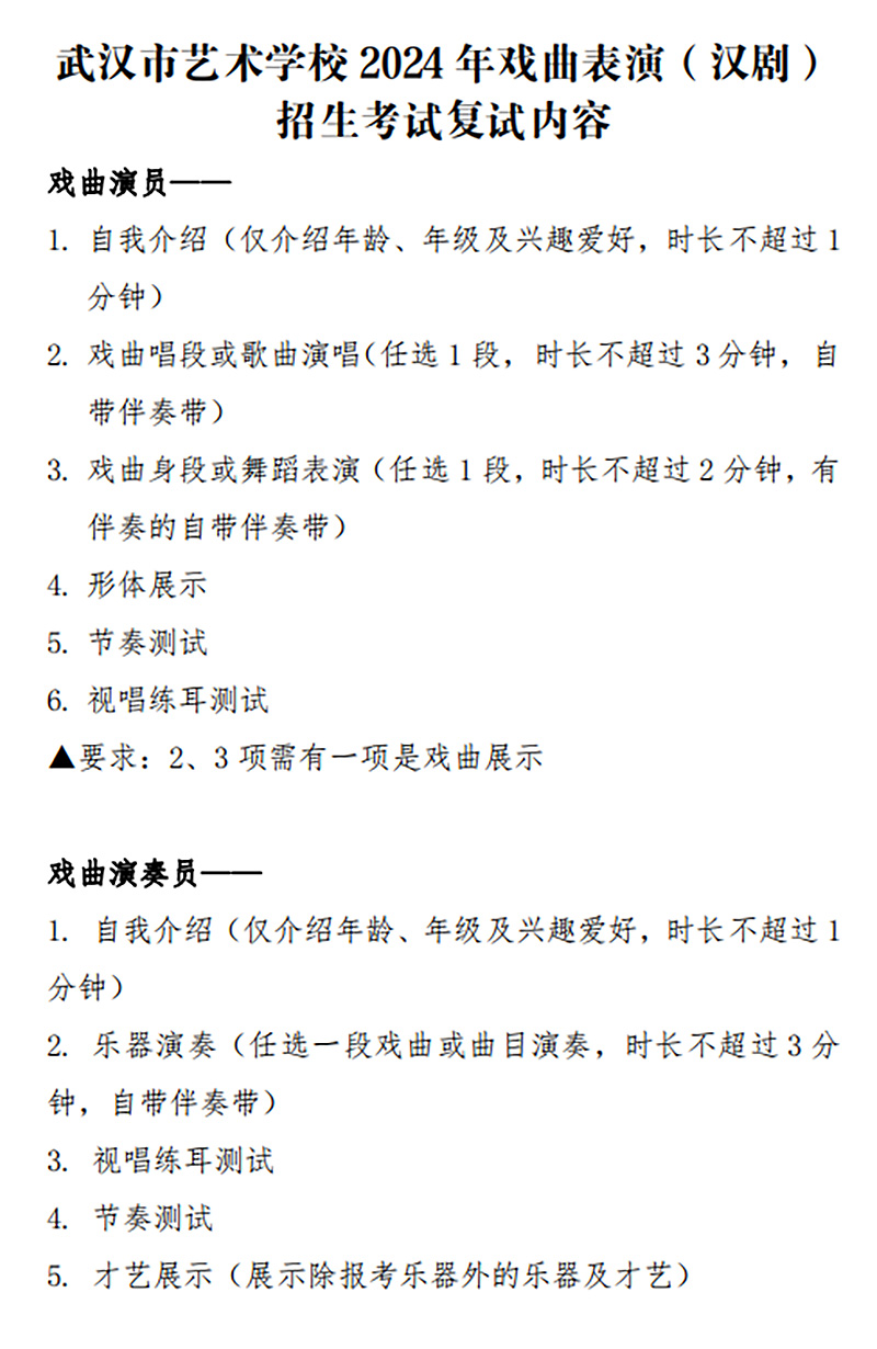 开云网页版 2024 年戏曲表演(汉剧) 招生考试复试内容