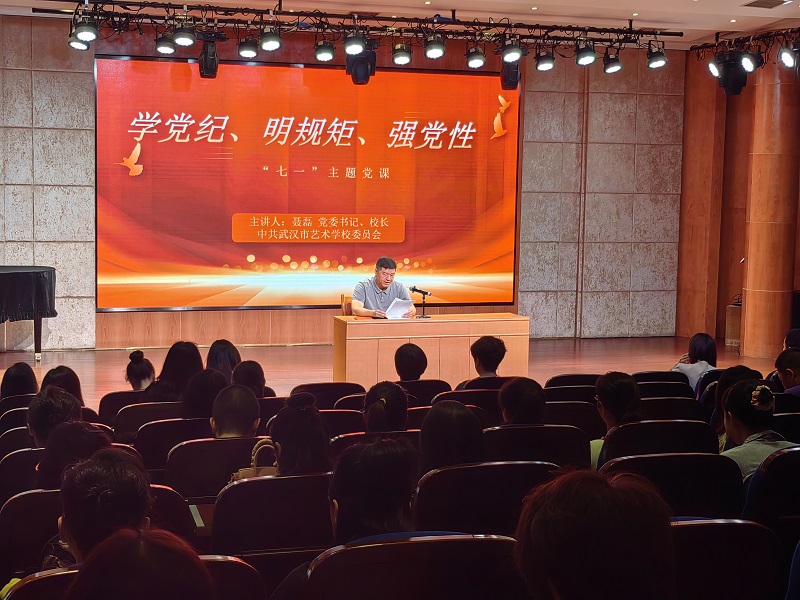随后,聂磊书记紧密结合党纪学习教育和习近平总书记关于全面加强党的纪律建设的重要论述等精神,结合开云网页版文化艺术教育工作实际为全体党员讲了一堂题为《学党纪、明规矩、强党性》的“七一”党纪教育主题党课。聂磊书记从三个方面回望党的光辉历程,汲取纪律建设的深刻启示,并向广大教职工党员干部提出三点学习要求:一是要在“深学”中,掌握规矩之“要”;二是要在“细悟”中,端正工作之“风”;三是要在“躬行”中,压紧落实之“力”。最后,聂磊书记强调广大党员干部要强化自我约束,提高免疫能力,切实以“学纪、知纪、明纪、守纪”的优良作风凝聚干事创业的精气神, 做到“内化于心正心修身、外化于行忠诚担当”,切实将党纪学习教育成果转化为推动个人“一岗双责”工作落实、艺术教育发展生动实践。