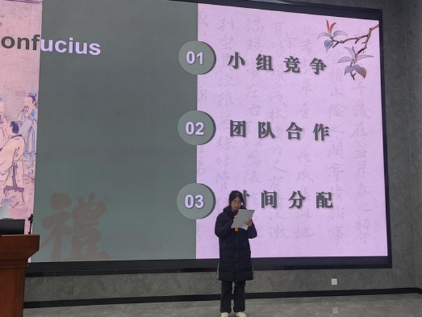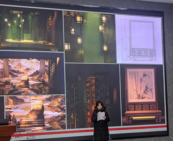 随后,聂磊校长、许丽娜主任为2024年世界职业院校技能大赛参赛选手易雨欣、左诗祺、李梦涵、詹依玲颁发奖牌和荣誉证书。美术造型赛项指导老师李光照和四位参赛同学分别上台做备赛经验分享。在此次世界职业院校技能大赛的舞台上,参赛团队以话剧《孔子》为载体,通过舞台设计传达孔子的思想精髓,将中国优秀传统文化元素进行转换设计,达到空间层次丰富,色彩典雅的效果,最终凭借出色的创意、默契的配合脱颖而出,斩获金奖(第一名)。
