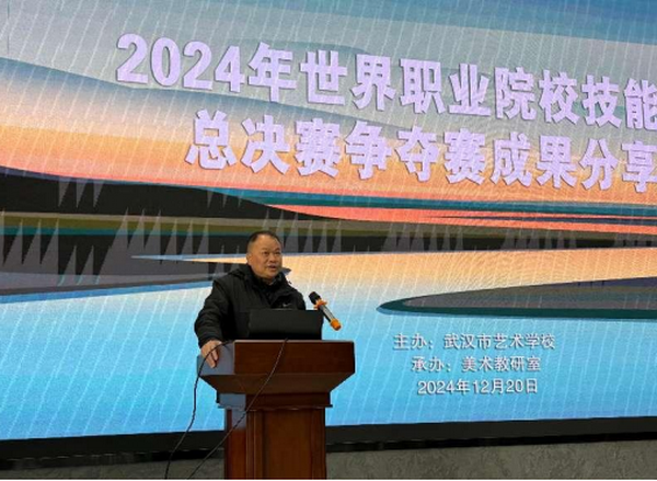 分享会上,聂磊校长对赛项进行全面总结。他指出,近两年来我校美术专业能够在世界职业院校技能大赛和全国职业院校技能大赛中分别获得金奖、一等奖的优异成绩,关键在于专业建设的高质量发展、教育教研的深挖推进,以及备赛团队协作制定策略与把控细节。面对全新赛制挑战,团队充分发挥了我校专业群的技能特色优势,依托教育教学沉淀,在全国舞台上展示出了我校职业教育办学特色。