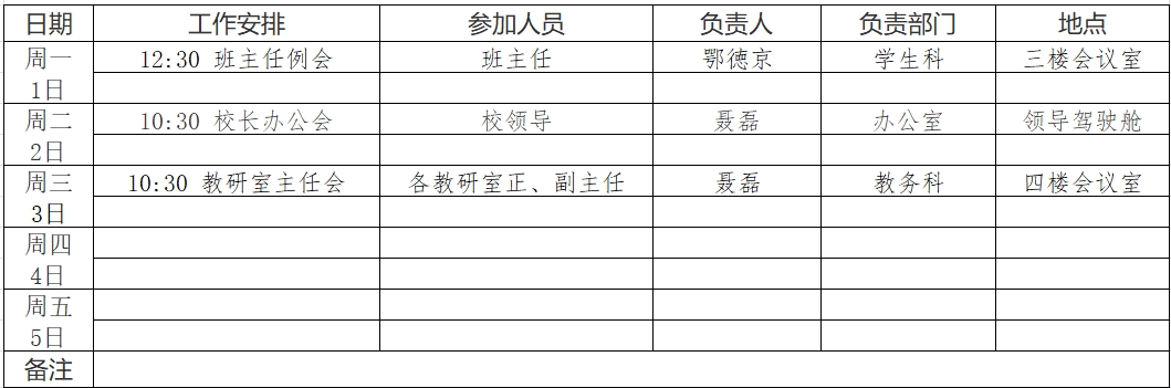 第1周工作安排表(2025年9月1日—9月5日)