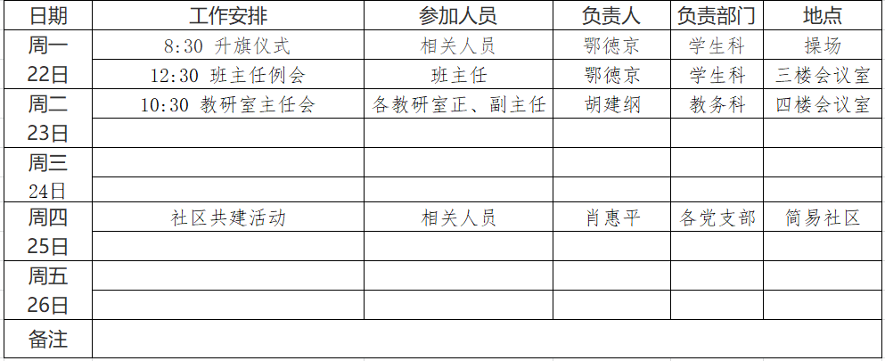 第4周工作安排表(2025年9月22日—9月26日)