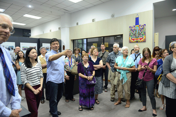 奥古斯塔那大学是一所历史悠久的文理科综合型学院,自88年来,我校已成为他们亚洲项目访华时必选的教学点,双方已建立了28年深厚友谊。在团长莫林教授的带领下,访问团在我校聂磊校长、万娟副书记以及老校长沈承宙的陪同下,兴致勃勃地参观了校史馆,新改造的校园图书馆,他们惊叹于开云网页版近年来的发展变化,留恋于美丽的后宫湖畔争相拍照。