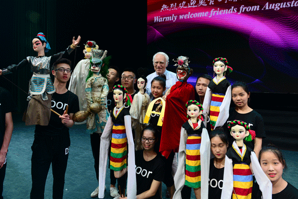 随后,代表团一行观摩了我校师生带来的精彩文艺演出:花季少女合唱团的歌曲《四季》、展现国粹京剧花旦之美的女子群舞《梨园小花旦》和重现旧时英雄飒爽英姿的古典舞剧目片断《红玉丹心》、展示苗寨古老服饰之美的服装展示《宛若新生》,以及喻凤老师的歌曲《memory》和弘扬中国传统文化精髓的戏曲《锦绣梨园》。精彩的节目让奥古斯塔那大学的师生们享受着一场丰富的视觉盛宴,即使演出结束仍久久不愿离去。