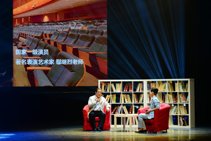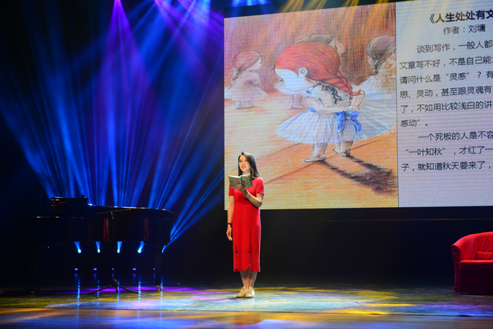 本届读书节可谓别具一格,在内容和形式上都有所创新。它以读书为契机,旨在展示一个属于艺校的情感世界。我们的师生真诚地分享了他们生命中那些关于选择的故事。故事中有他们人生路上的徬徨与坚守,也有师生之间的坦诚和温暖,有父母对孩子的叮咛,也有孩子对父母的感念。当刘静老师穿着宽松的孕妇装朗读《和孩子谈幸福》时,孩子们看到了一颗母亲的心;当严亮老师借《从文家书》追忆与爱人鸿雁传书的青春岁月时,孩子们领略了爱的沉静与美好;当李如春老师在《寻找梦想》中倾吐心声时,孩子们懂得了坚守的意义;最后当著名表演艺术家鄢继烈老师声情并茂朗读《钢铁是怎样炼成的》时,一场关乎声音、文字与心灵的盛宴抵达高潮。