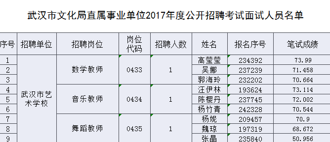 武汉市文化局直属事业单位2017年度公开招聘工作人员面试公告