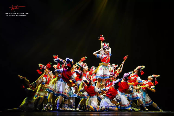 李颖奇老师曾两次深入到云南大理白族自治州田野进行采风,舞蹈音乐取自国家级非遗项目“剑川白曲”,场景表现的是国家级非遗民俗项目“石宝山歌会”动作语汇来自云南省级非遗项目“东山打歌”,整个舞蹈作品就是一个活态的非遗展示。