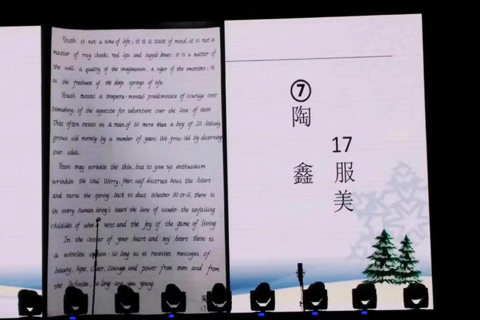 在艺术教育的过程中,为了使学生的青春活力与英语魅力完美结合,我校于2018年1月3日下午在实验剧场举行了以“Just Youth. On the Way!”为主题的第七届英语节。