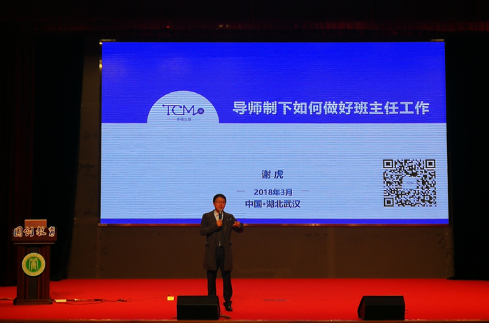 接着,国家生涯规划师谢虎老师作了《导师制下如何做好班主任工作》的报告。他认为在新高考采取选课走班制管理的模式下,班主任可以用各种手段唤醒学生的学习欲望。谢老师着重介绍了MBTI在班级管理中的运用,他还认为班主任可以运用焦点技术和教练技术帮助学生发现错误,推荐班主任采用打卡退奖金的21天训练营的方式提升学习力和自主管理能力。