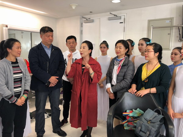 10月4日晚,我校师生到达央视演播厅进行节目彩排。彩排期间,武汉市纪委派驻市文化局纪检组组长陈峰、市文化局副局长杨菁对我校师生进行了探望,并对我校排演的节目给予了高度的评价和充分的肯定。在为期4天的节目彩排、录播中,为了节目完美呈现,我校师生团结协作,不畏困难,始终保持高昂的热情和严谨的态度,最终以饱满的精神面貌,精湛的舞蹈水平和专业的舞蹈素养,圆满完成了《唱响新时代》国庆特辑全国现场直播演出任务。