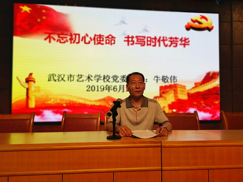 表彰活动结束后,牛敬伟书记为全体党员讲了题为《不忘初心使命 书写时代芳华》的“七一”专题党课。课上,牛书记结合党的十九大、习近平新时代中国特色社会主义思想、“不忘初心、牢记使命”主题教育宗旨,从共产党人的初心和使命、坚守初心的三种境界、如何书写忠诚的时代芳华三个方面对全体党员进行了理想信念教育。最后,牛书记提出,党员干部要增强“四个意识”,不忘初心、牢记使命,立足本职岗位,在平凡的艺术教育教学管理岗位上书写时代芳华!