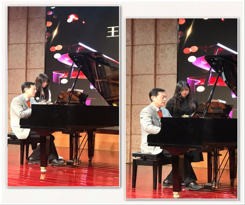 讲学活动在开云网页版音乐厅举行,分教学展示、钢琴大师课、学术交流互动问答等三个环节依次进行。在教学展示环节,王教授安排他的两名得意门生,武汉音乐学院附中2016级钢琴演奏专业学生钱馨蕊和武汉音乐学院2018级钢琴硕士陈书亦,分别演奏了贝多芬、拉赫玛尼诺夫、瓦格纳、李斯特、舒曼、黄安伦、但昭义等七位中外钢琴家的10首作品。两名学生的演奏技法娴熟,音乐表现合理自然,透过演奏可以看出其指导教师严谨规范的教学理念,每曲演奏结束,现场响起阵阵热烈的掌声。