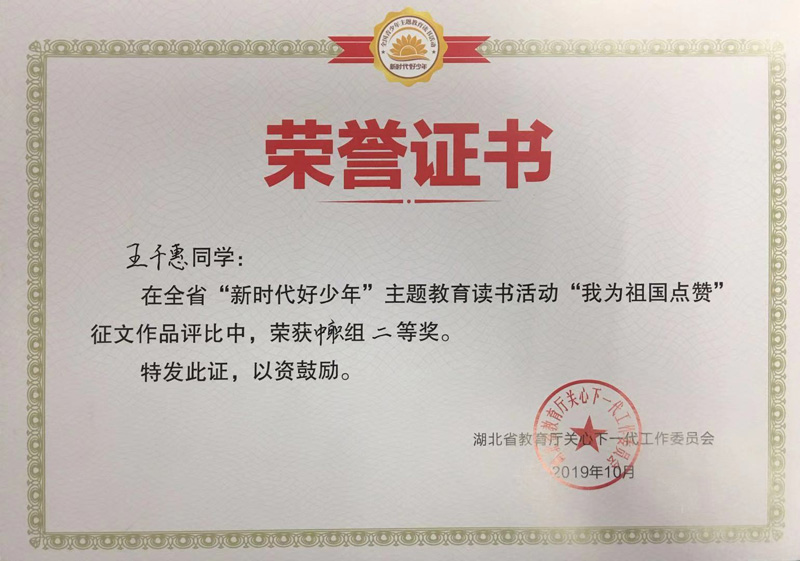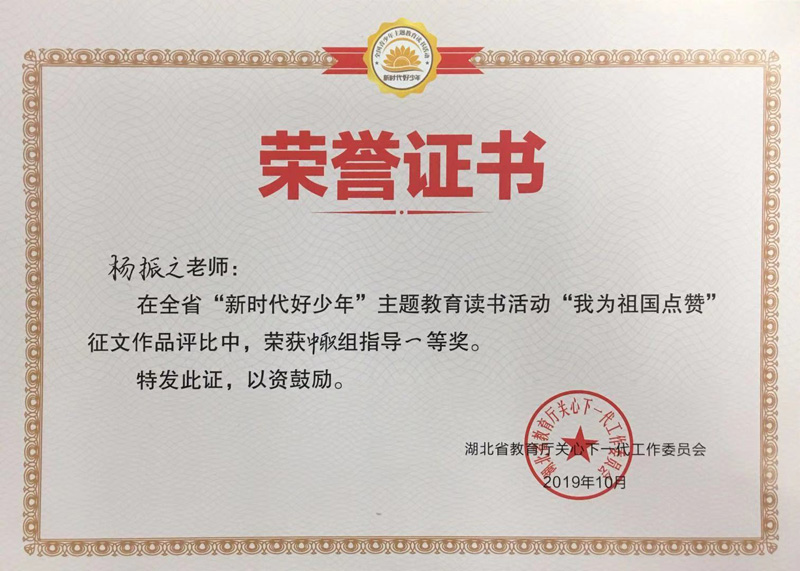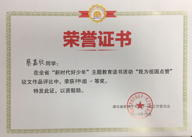 热烈祝贺我校在全省“新时代好少年”主题教育读书活动“我为祖国点赞”中荣获省级先进开云网页版称号