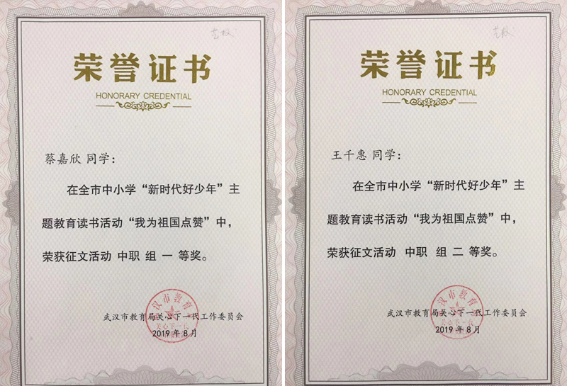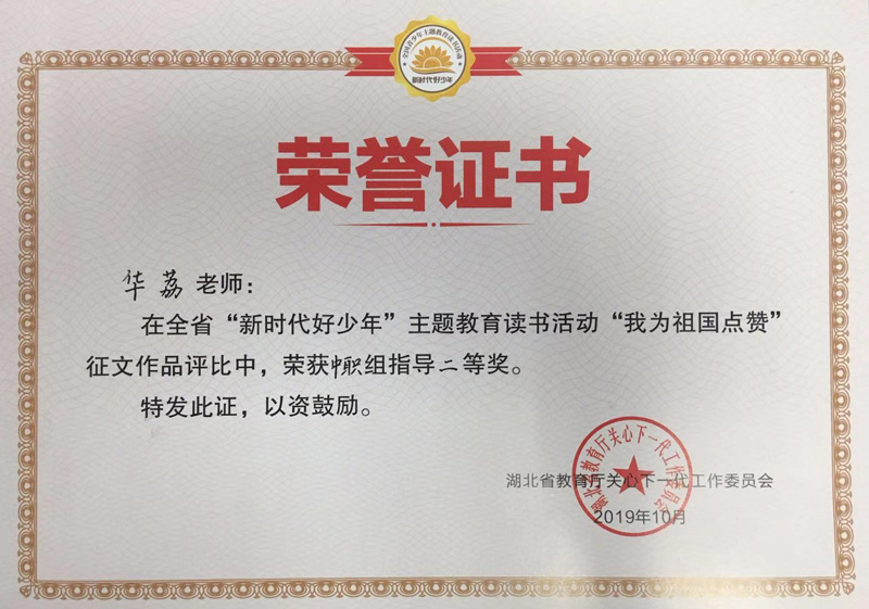 热烈祝贺我校在全省“新时代好少年”主题教育读书活动“我为祖国点赞”中荣获省级先进开云网页版称号,许丽娜老师荣获省先进个人称号。杨振之、华荔两位老师分获征文作品评比中职组指导一、二等奖。蔡嘉欣、王千惠两位同学分获征文作品评比中职组一、二等奖。陈龙亮、袁淑威两位同学荣获演讲复赛中职组三等奖;在全市中小学“新时代好少年”主题教育读书活动“我为祖国点赞”中,蔡嘉欣、王千惠两位同学分获征文活动中职组一、二等奖。陈龙亮、袁淑威两位同学荣获演讲活动中职组三等奖。